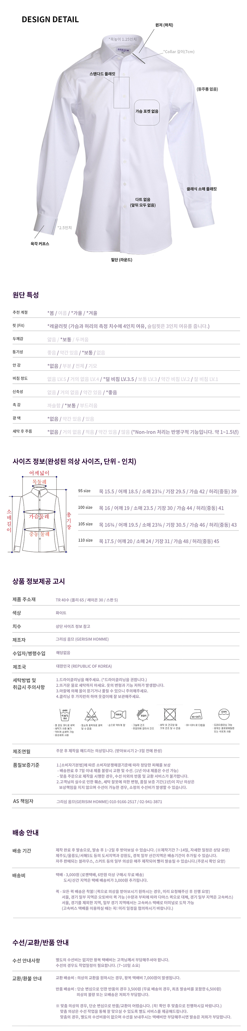 기성 사이즈 제작 셔츠