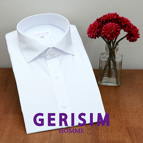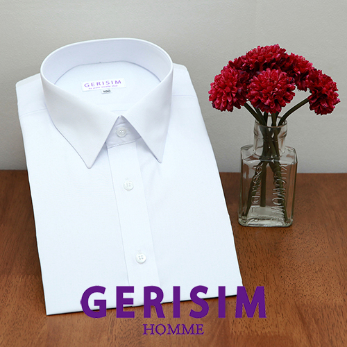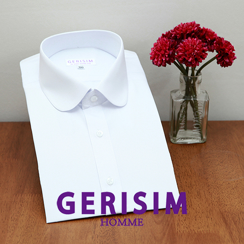 레트로 디자인의 굴림 칼라 드레스셔츠. 60˚의 레귤러칼라에서 끝만 굴린 스타일로 단정하고 포멀한 디자인의 칼라