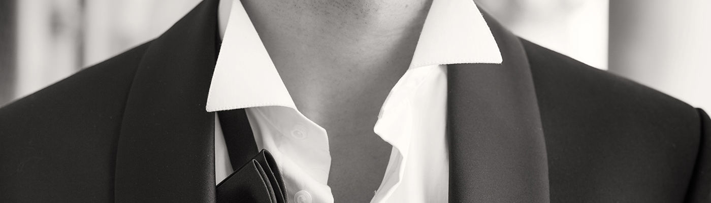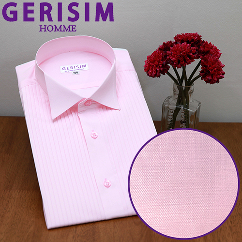 - 그리심옴므 화이트 턱시도셔츠 실크제작, 세로핀턱 장식, 윙칼라 기본크기 적용.